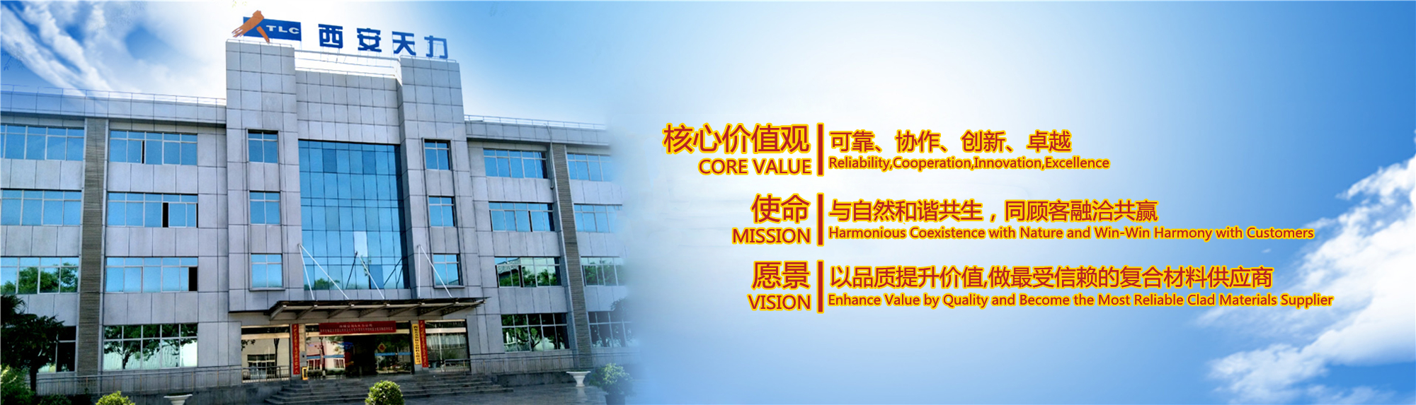 西安天力金屬復(fù)合材料股份有限公司是西北有色金屬研究院(集團(tuán))產(chǎn)業(yè)化上市公司“西部材料”控股的獨(dú)立法人公司,是專業(yè)從事層狀金屬復(fù)合材料研究及生產(chǎn)的高新技術(shù)企業(yè),成立于2003年12月25日,位于西安經(jīng)濟(jì)技術(shù)開發(fā)區(qū)涇渭工業(yè)園,注冊(cè)資本10895萬股,擁有生產(chǎn)廠房23000余平米,各類生產(chǎn)設(shè)備200余臺(tái)套及兩塊條件優(yōu)越的爆炸復(fù)合場(chǎng)地,形成年產(chǎn)35000噸層狀復(fù)合材料的生產(chǎn)加工能力……